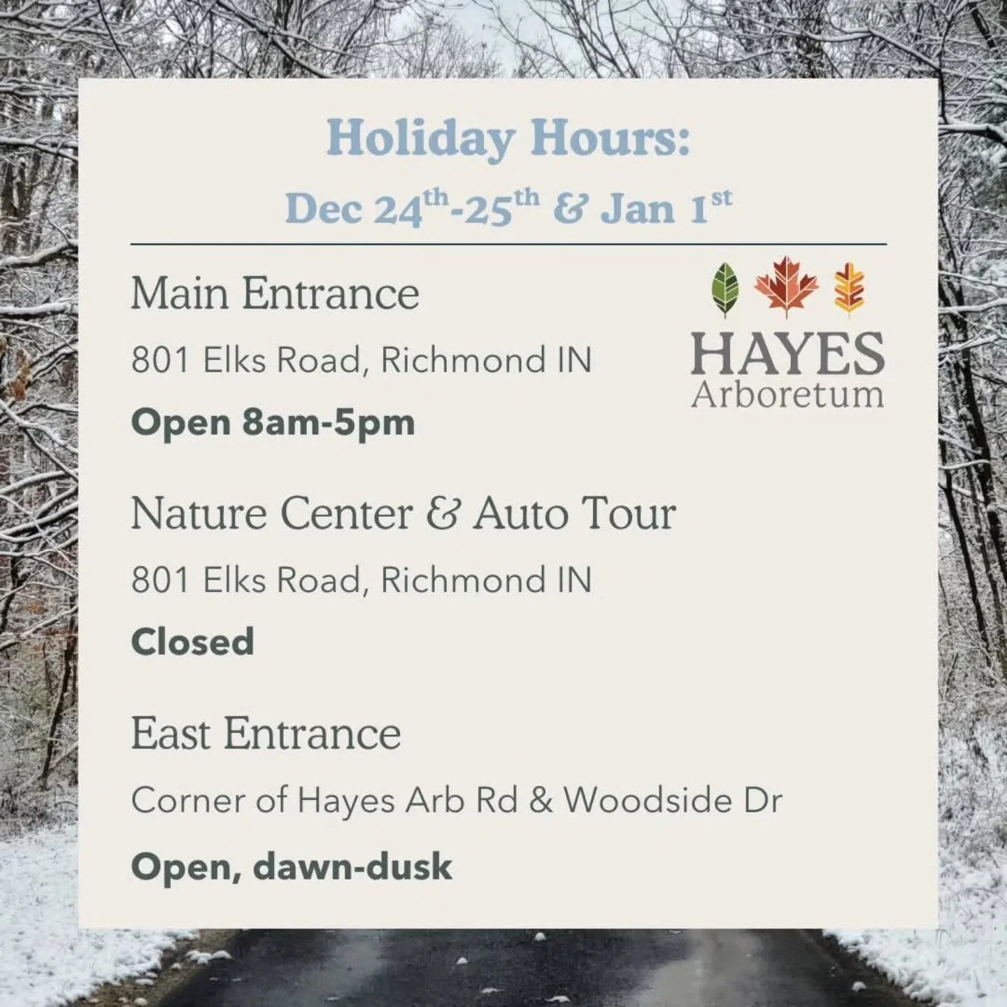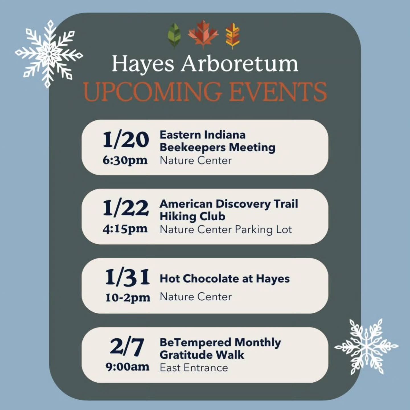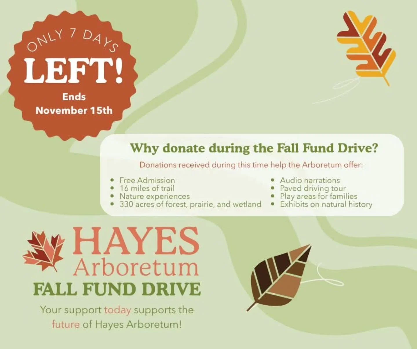 Connecting People to Nature for Over 60 Years Discover how the vision of Stanley W Hayes turned into a legacy of environmental stewardship. Mission & History New Certification for Hayes Arb Hayes Arboretum was awarded a Level II Accreditation through ArbNet. News from Hayes Tree Observations Used in Scientific Article Data collected at Hayes Arboretum is making a difference. News from Hayes Powered by the Sun Newly installed Solar Panels power the Nature Center. News from Hayes Quick Links Become a Member Support our mission by becoming a member today. Trail Map Explore 330 acres along 16 miles of trail. Upcoming Events Join us during our next event. Follow us on socials View fullsize View fullsize View fullsize View fullsize Follow on Facebook Follow on Instagram Certifications & Partners